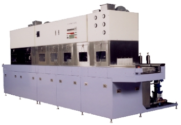 ネットコンベアで連続搬送しながら、荒洗浄、仕上げ洗浄、